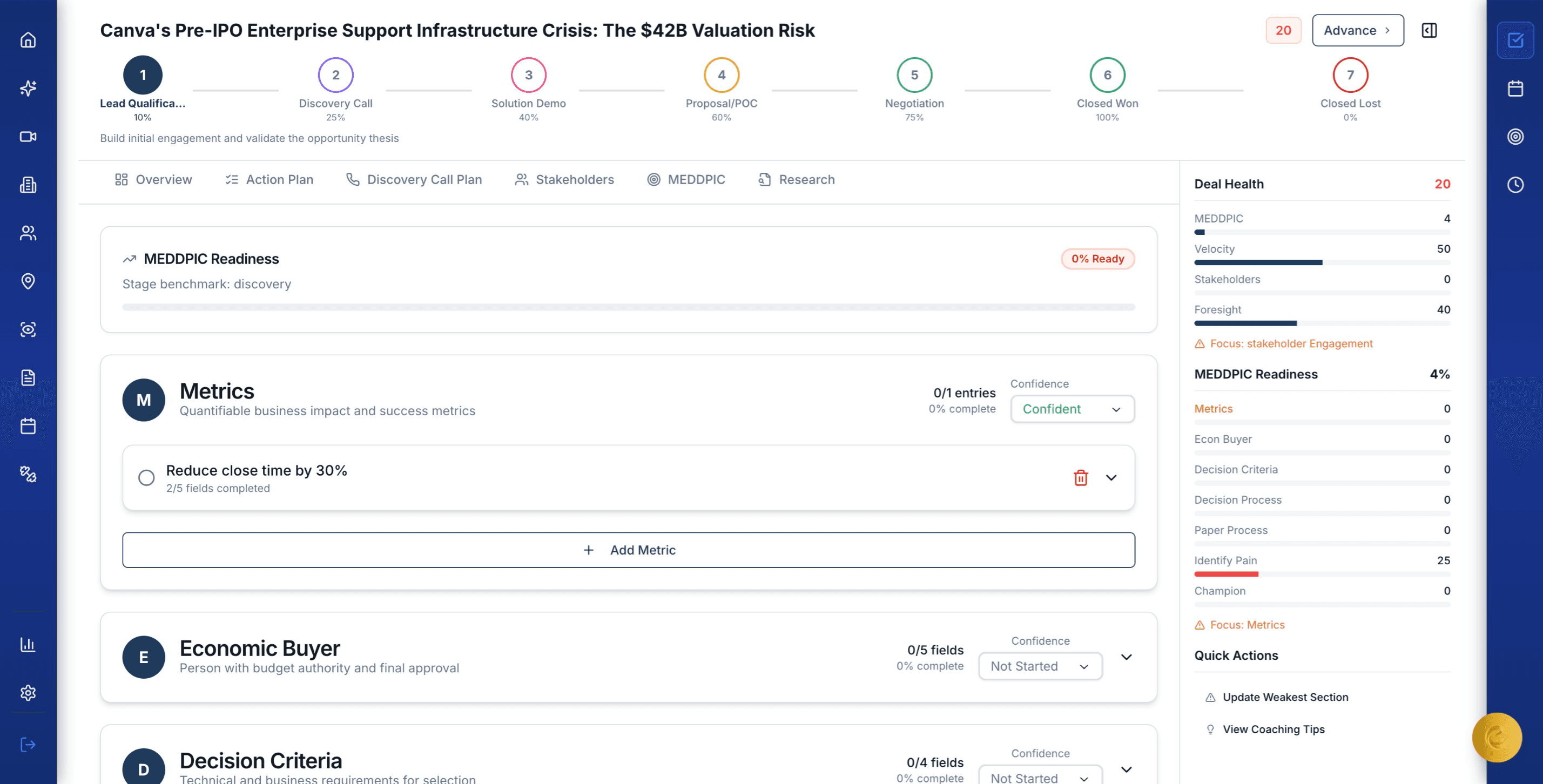 Multi-source enrichment combines Apollo.io, BrightData, and Gemini to build deep contact profiles. Every stakeholder gets a KDM score quantifying their decision-making authority — so your reps know exactly who matters.
