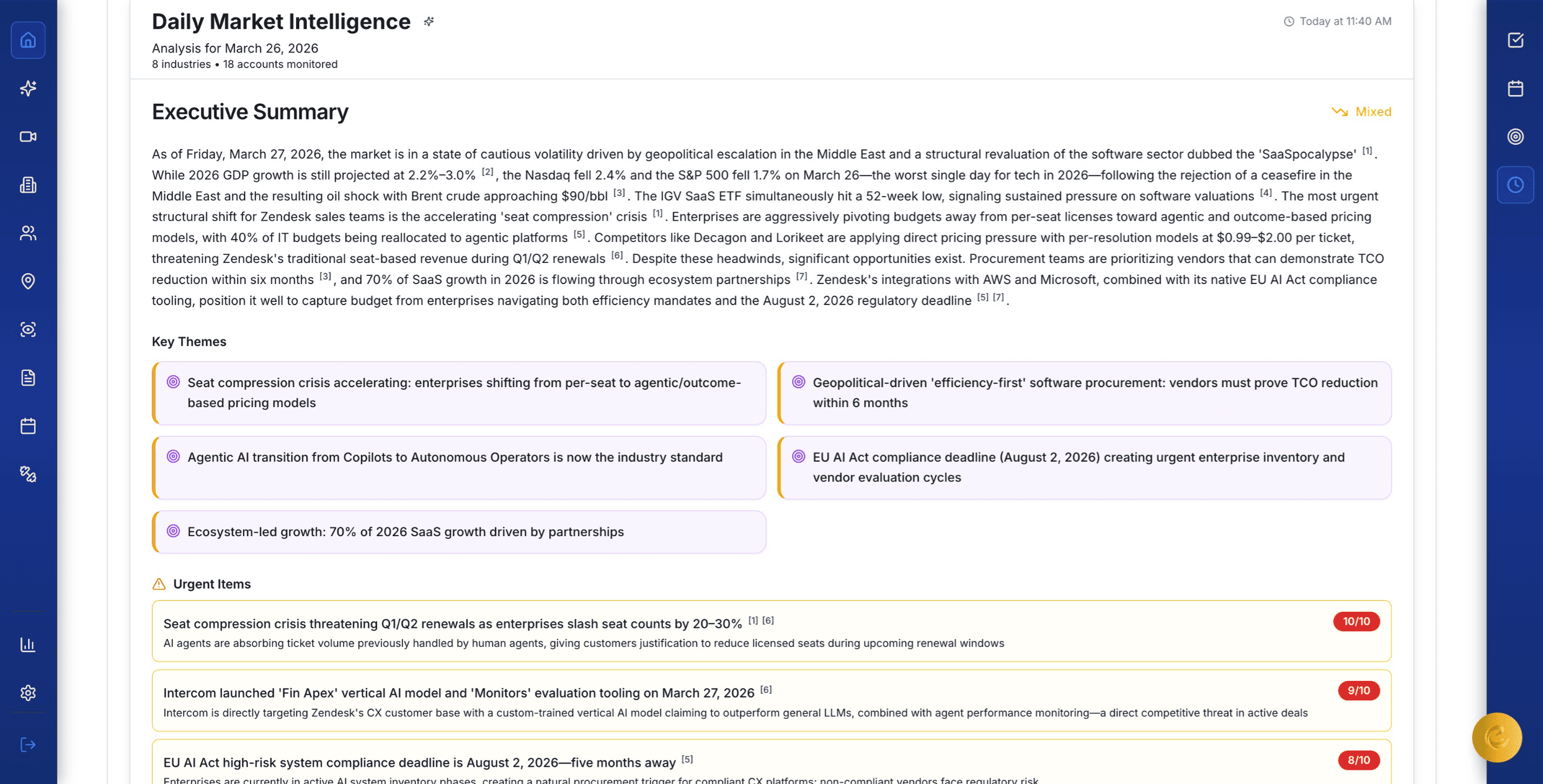 Enki Foresight™ detects emerging account pain across eight signal types and delivers a complete engagement strategy — so your reps act while competitors are still guessing.